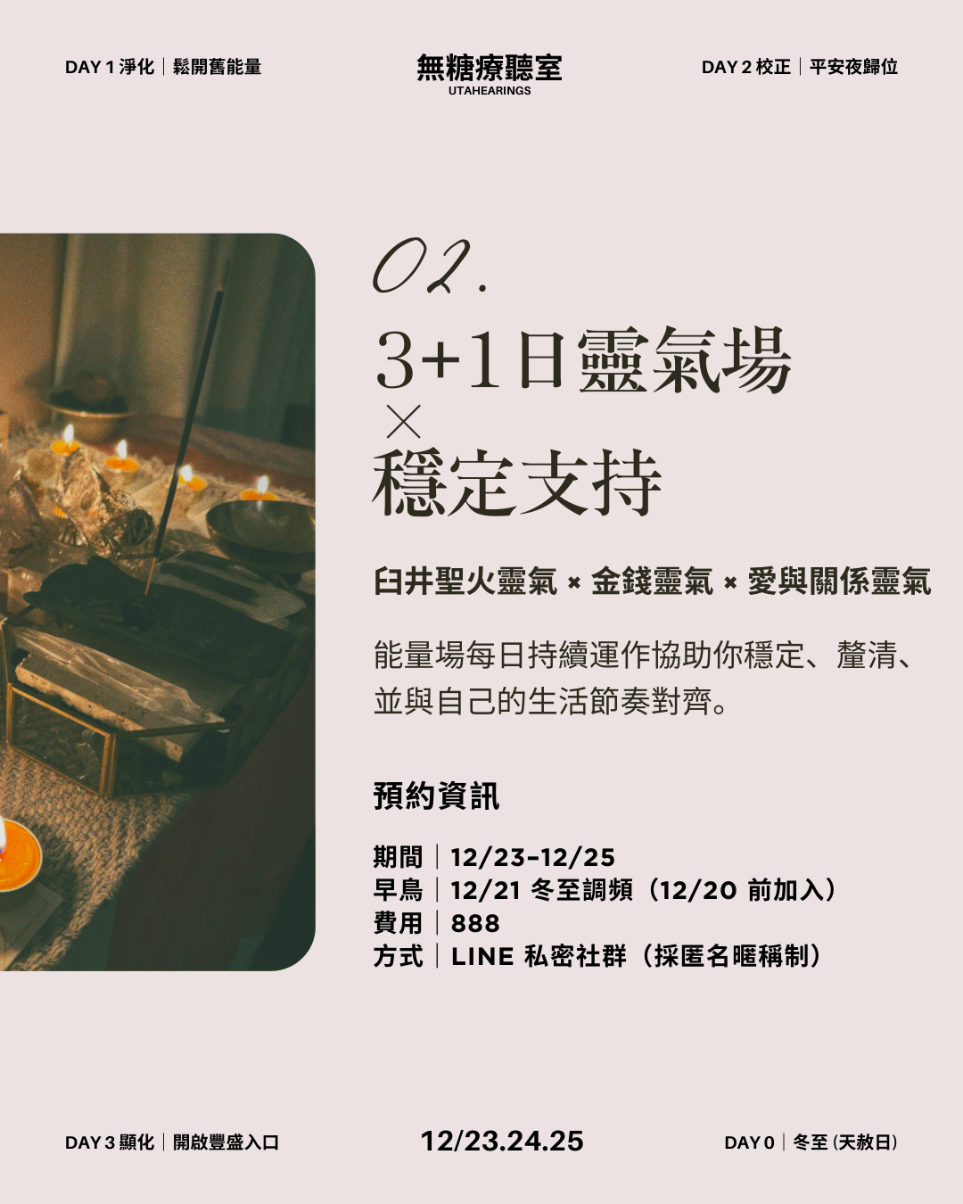 • 早鳥限定:12/21 冬至調頻(12/20 前加入)