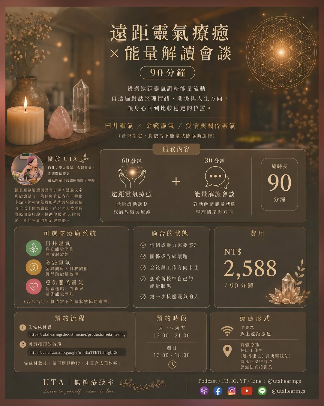本服務為能量療癒與身心陪伴,並非醫療行為。